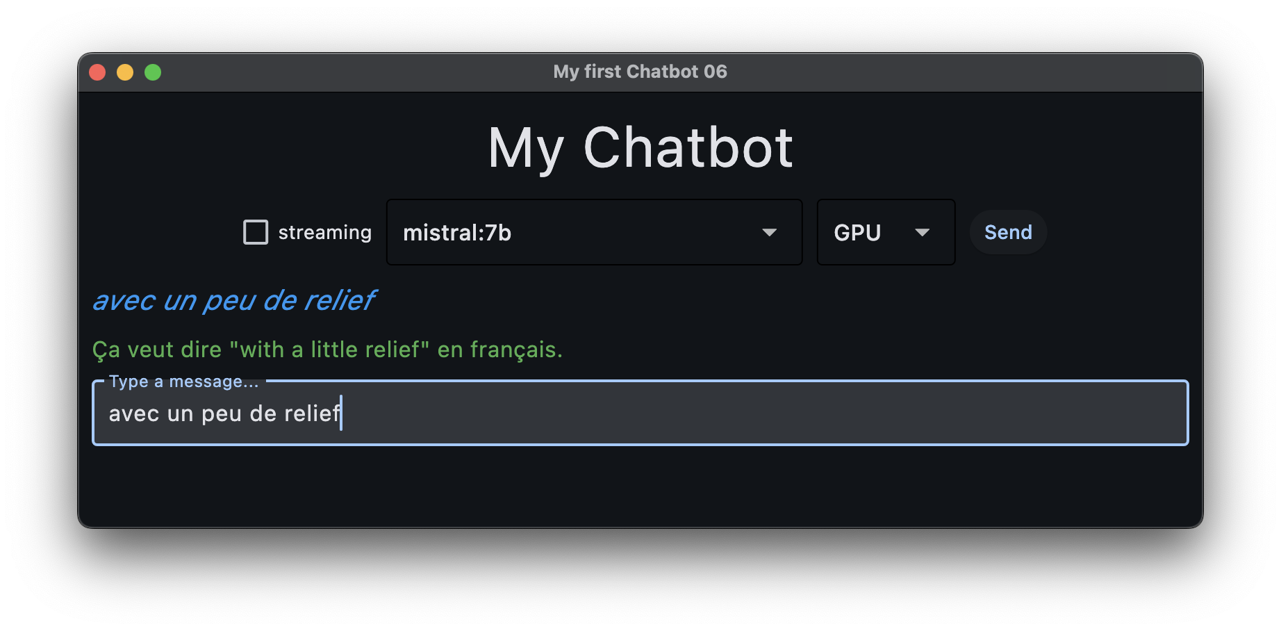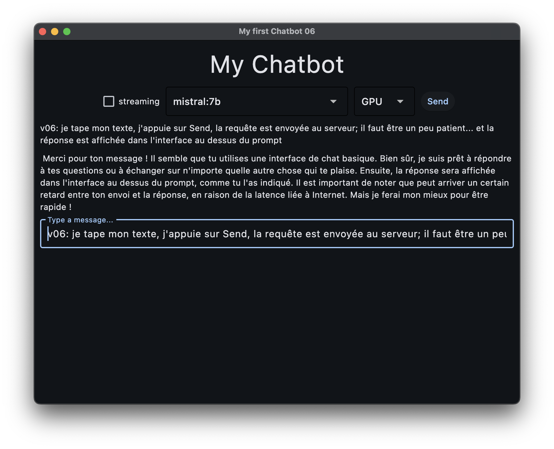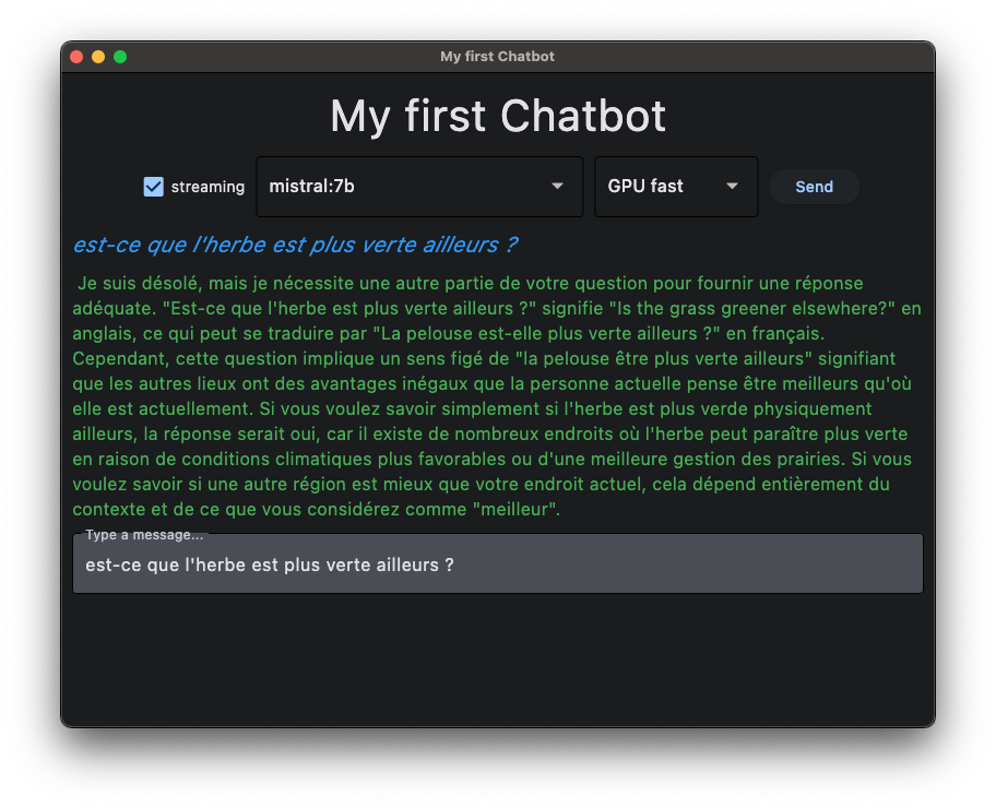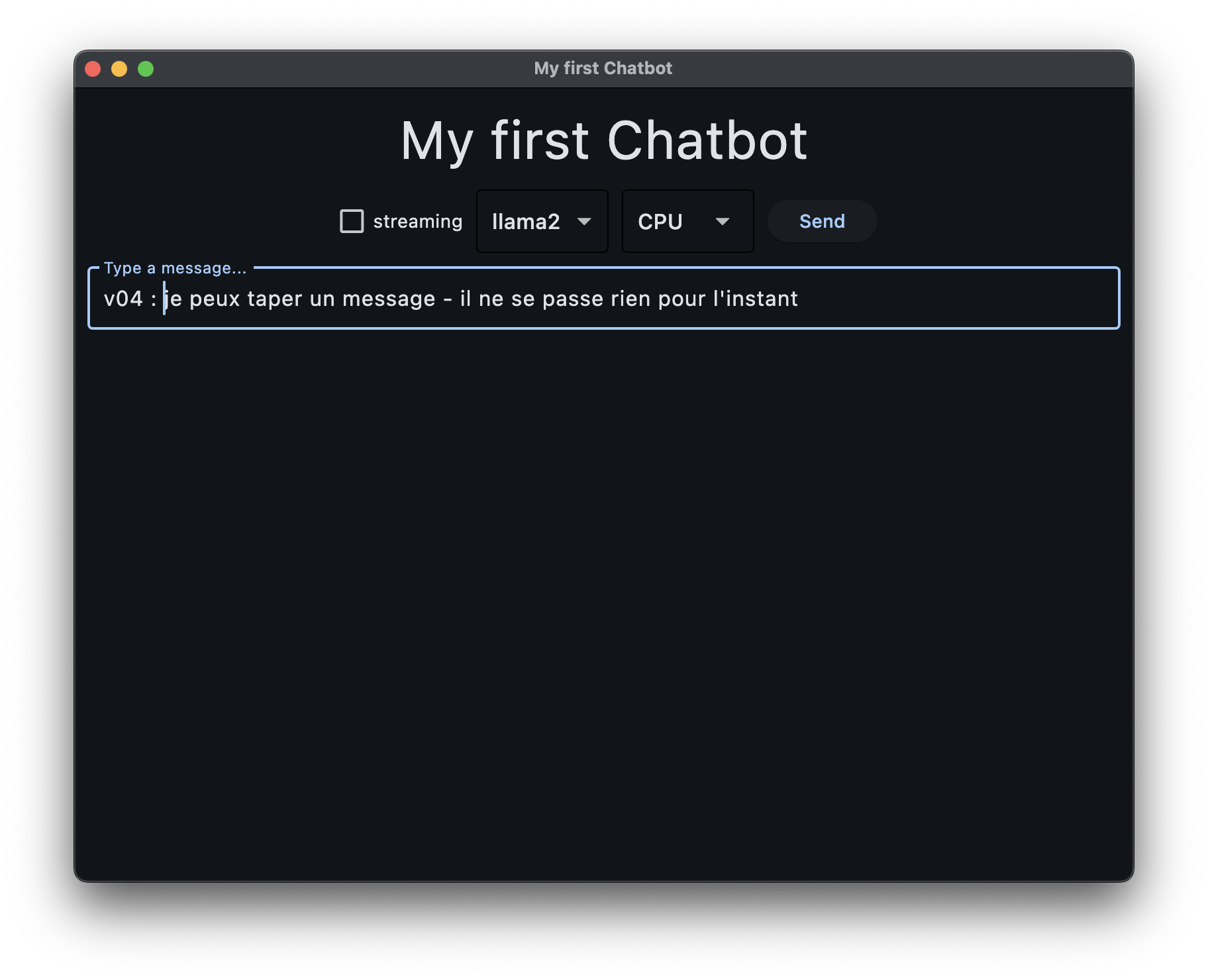 flet run chatbot.pyvous devez voir une UI un peu tristoune, avec seulement