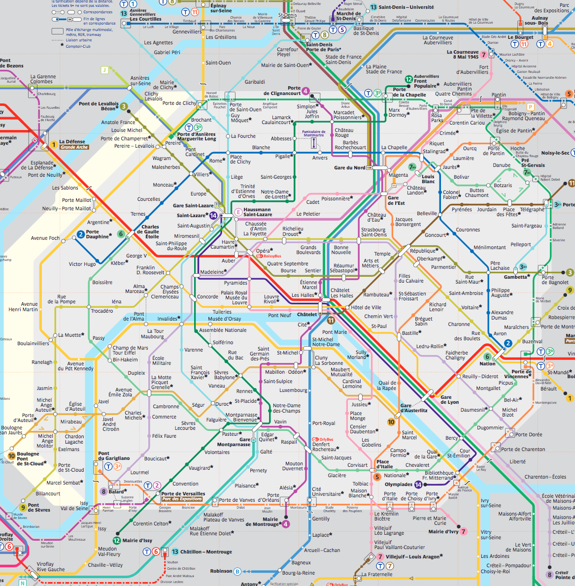 numéroter les stations (en partant de Chatelet) selon les deux parcours
