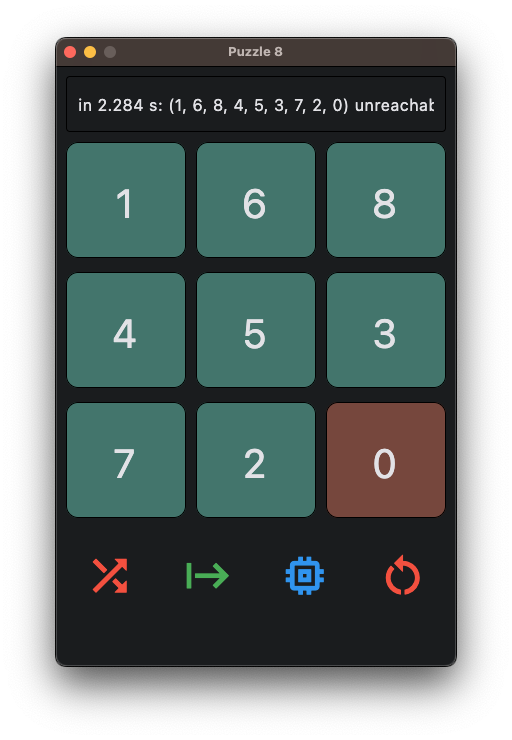 with our convention that the goal is “1 2 3 4 5 6 7 8 0”, here’s a sample of